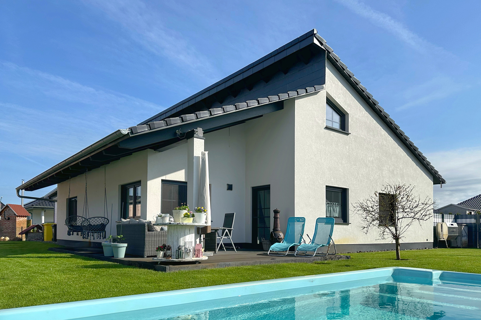 Terrasse, Einbauküche, Garten, Pool, Mähroboter, Wallbox,